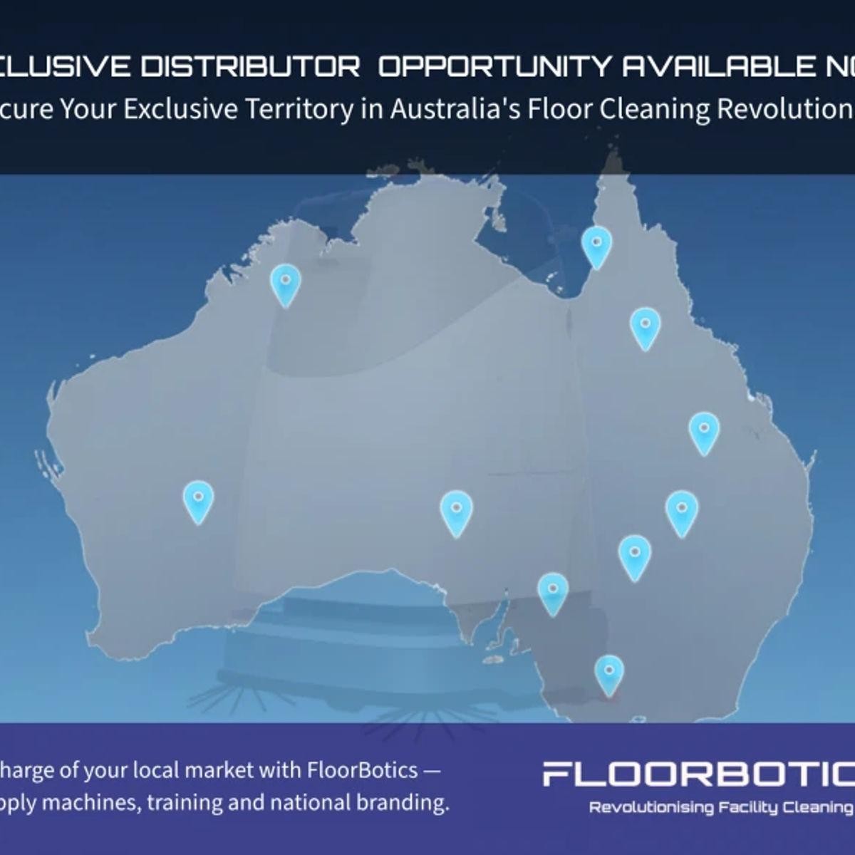Join the award-winning FloorBotics. We are expanding our (established in 2001) Australian distributor business network and offering a unique, ground-floor distributorship opportunity in your area. This is an exceptional chance for an ambitious individual or business with B2B development experience to capitalise on a rapidly growing market and represent a premium range of autonomous floor cleaning robots within a protected territory.