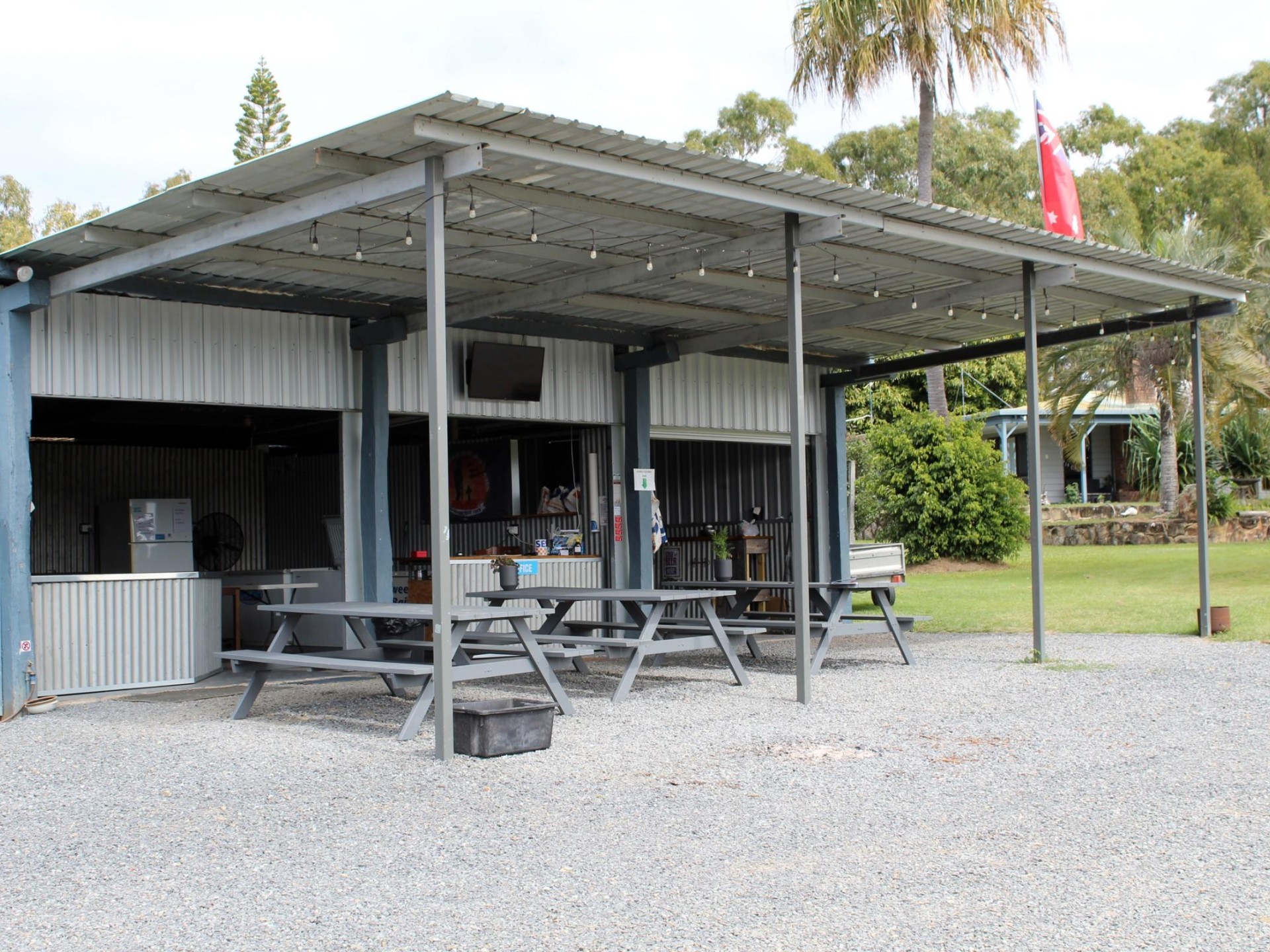The property boasts a 4 bedroom ranch-style manager's homestead. For guests there are 15 overnight sites, a cottage for overnight rental and a 9-hole golf course. Guests can fish off the private jetty or along the 750 meters of salt-water creek frontage. Power is from mains, solar and a back-up generator and two large sheds accommodate the necessary machinery. The camp kitchen and amenities are virtually new.