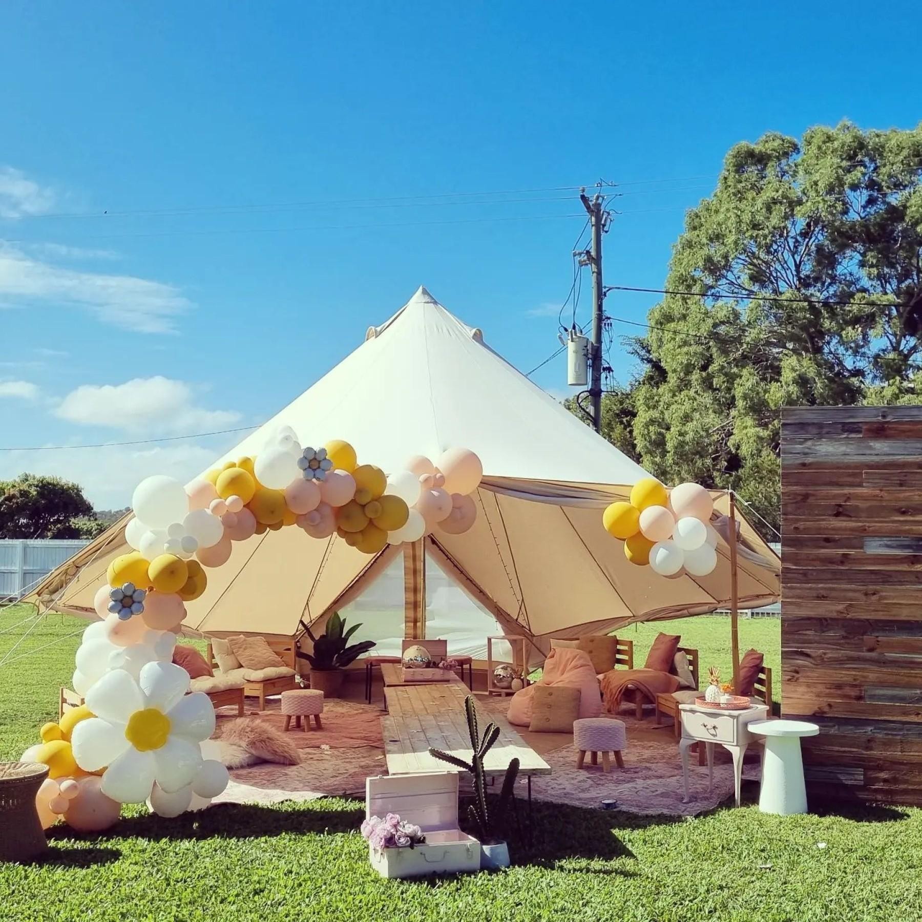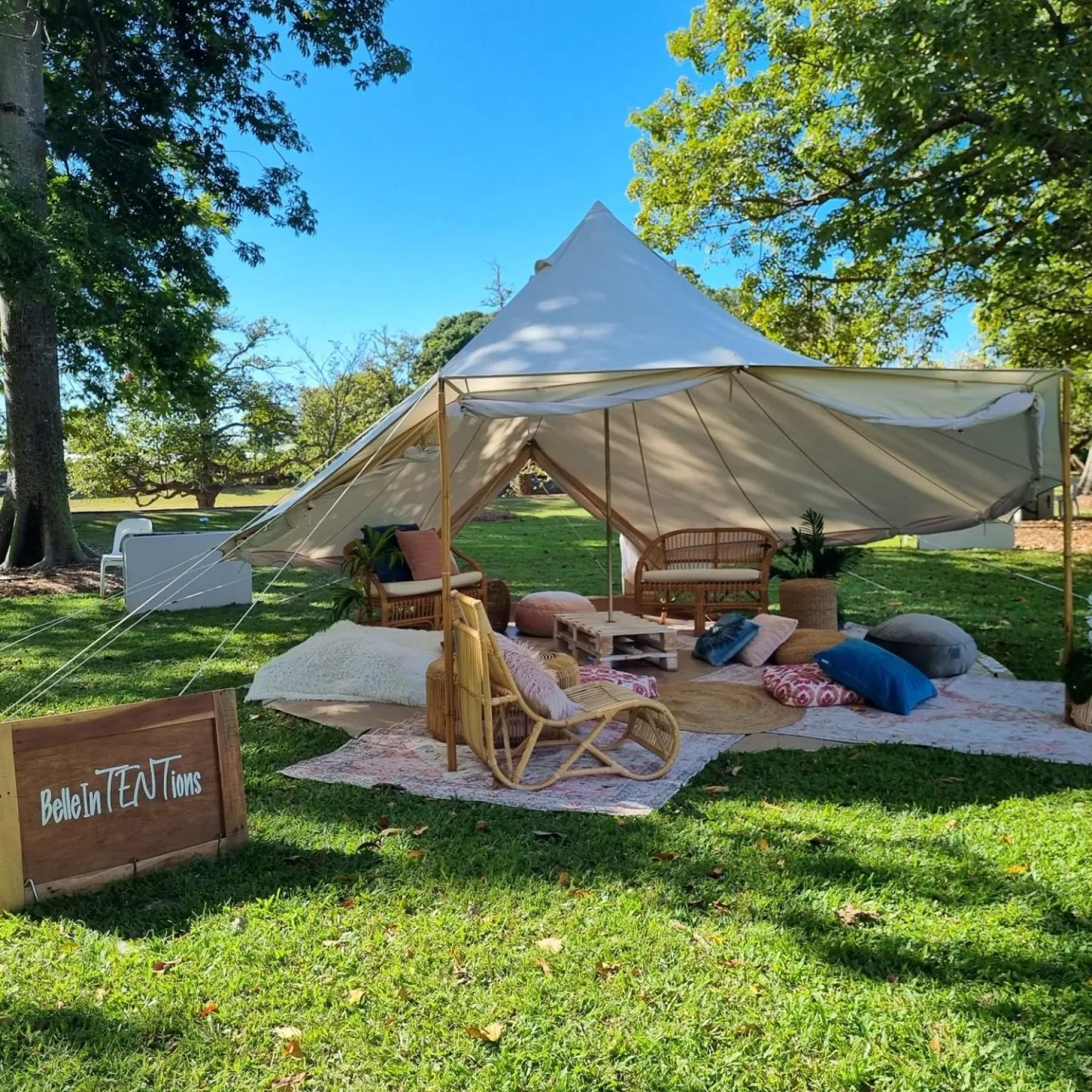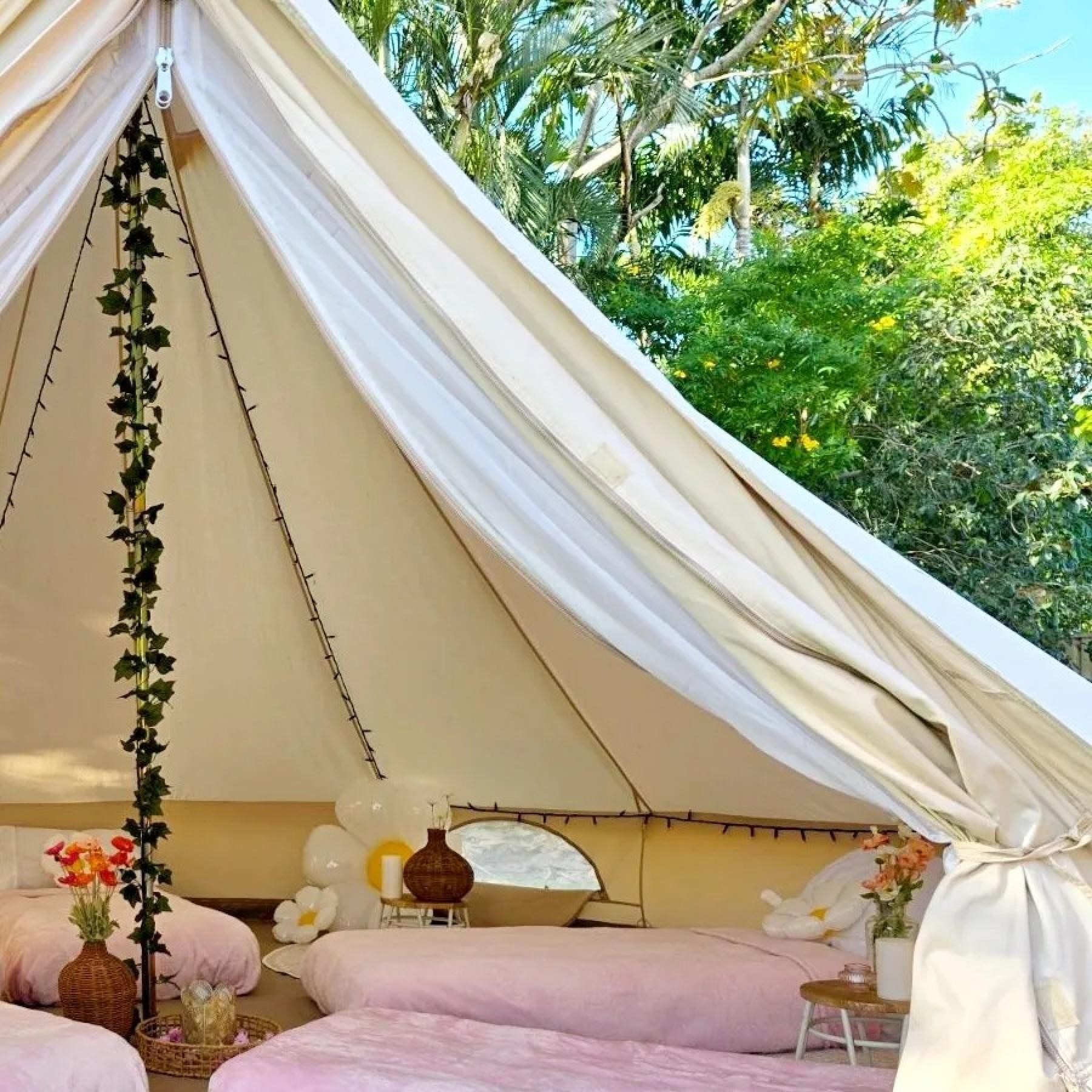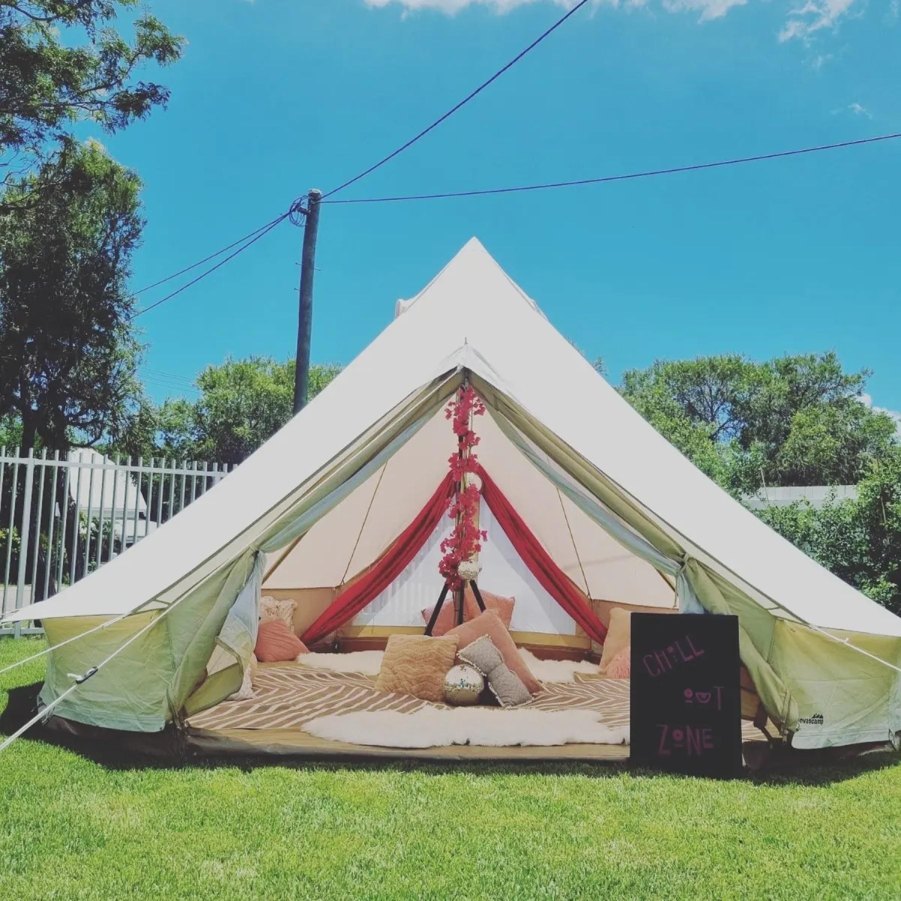 - 20 premium bell tents, accommodates up to 100 guests