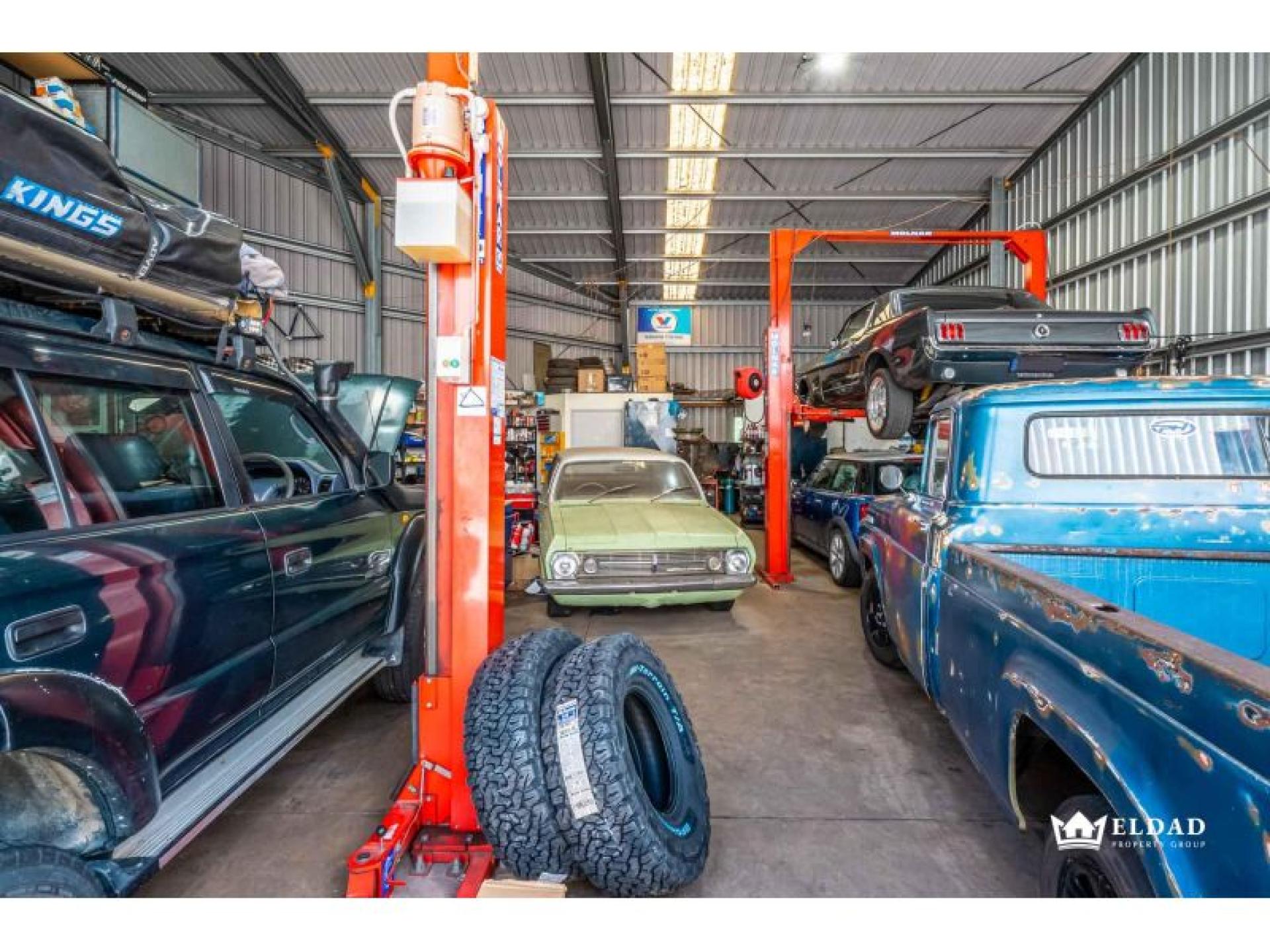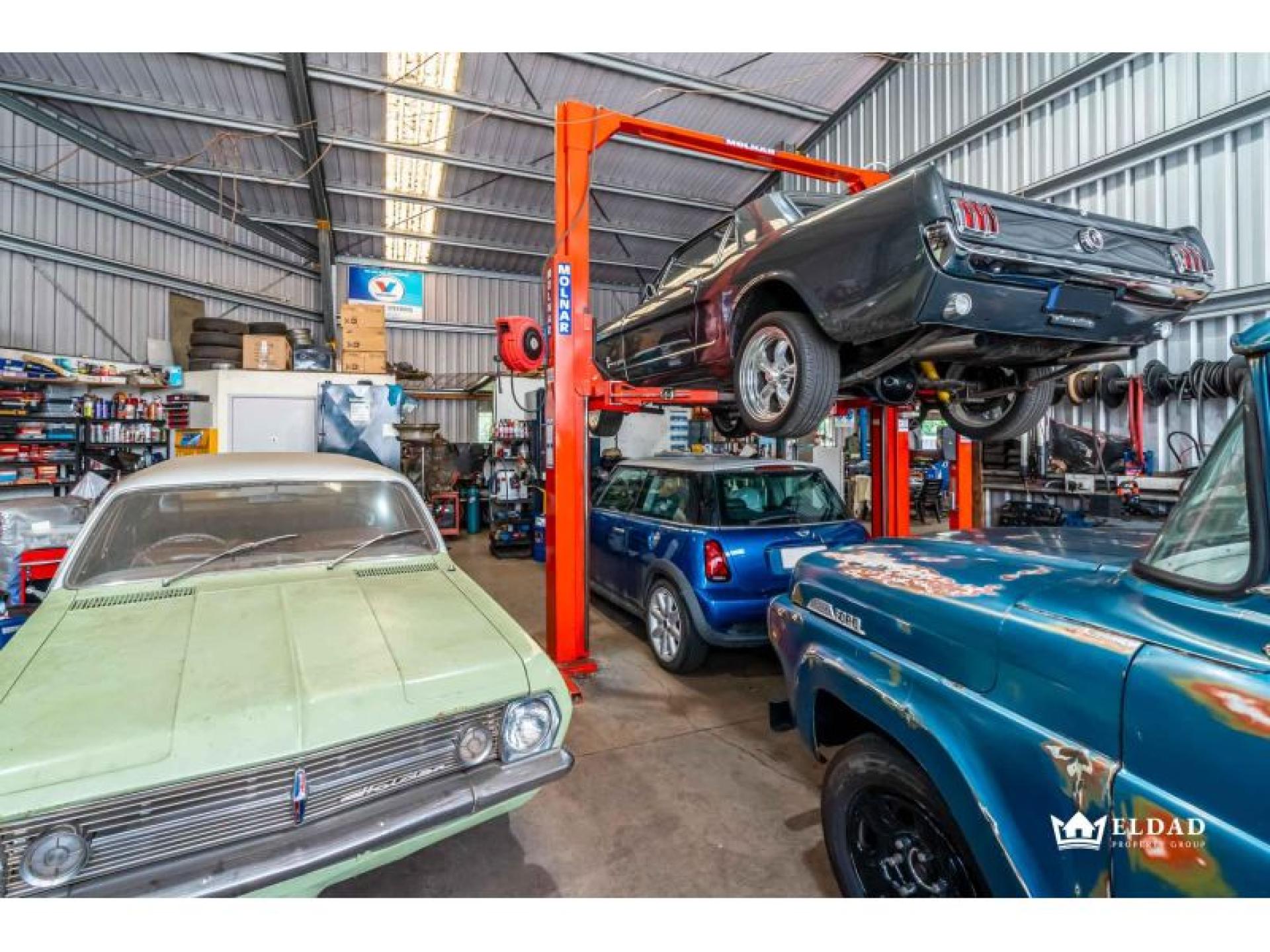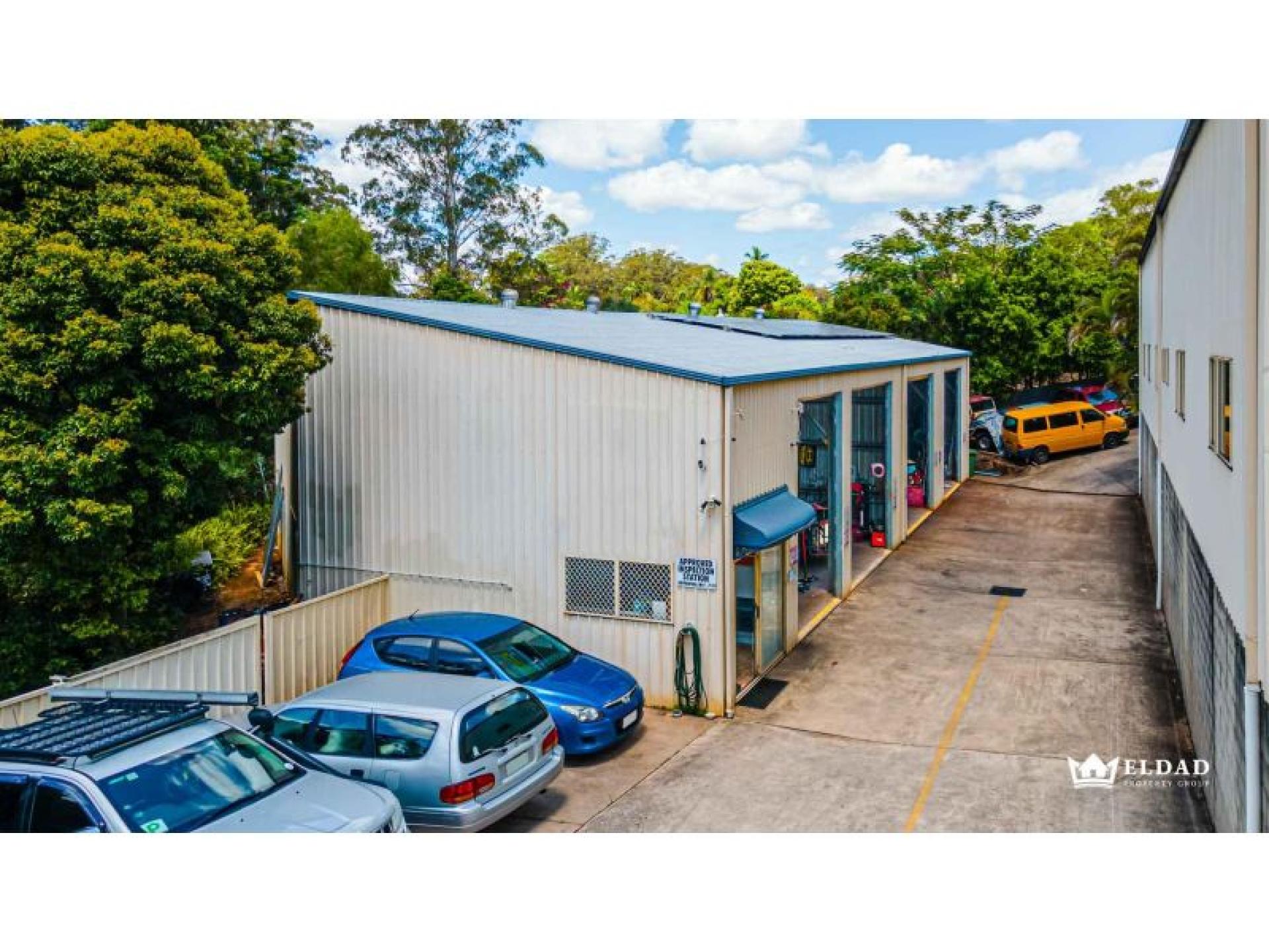 - Functional workshop with generous internal clearance and mezzanine storage
