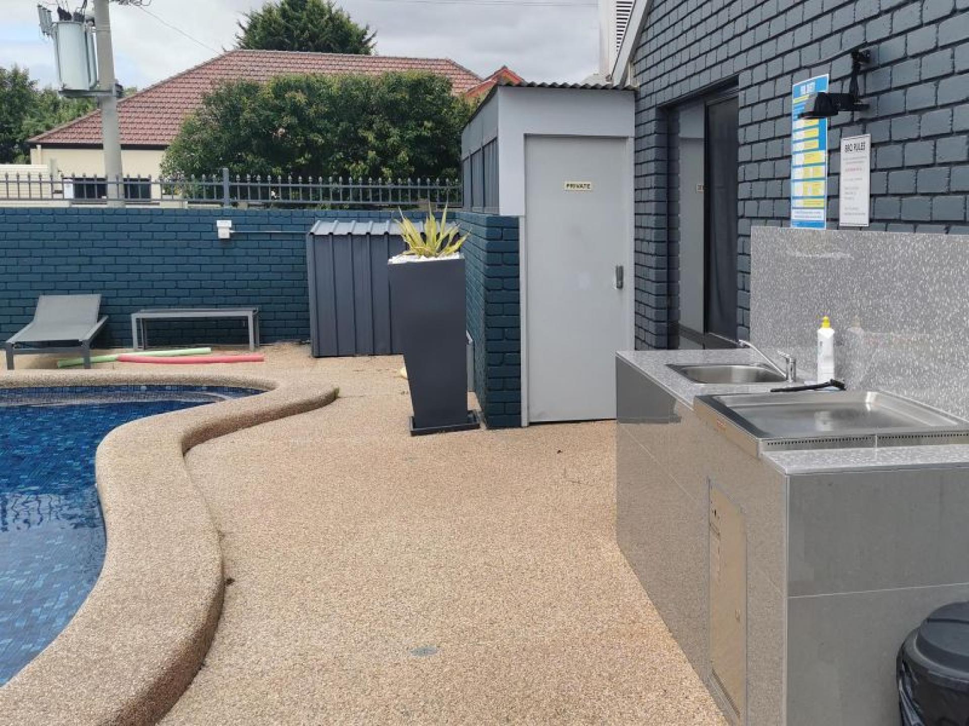 - Outdoor saltwater swimming pool and barbeque area