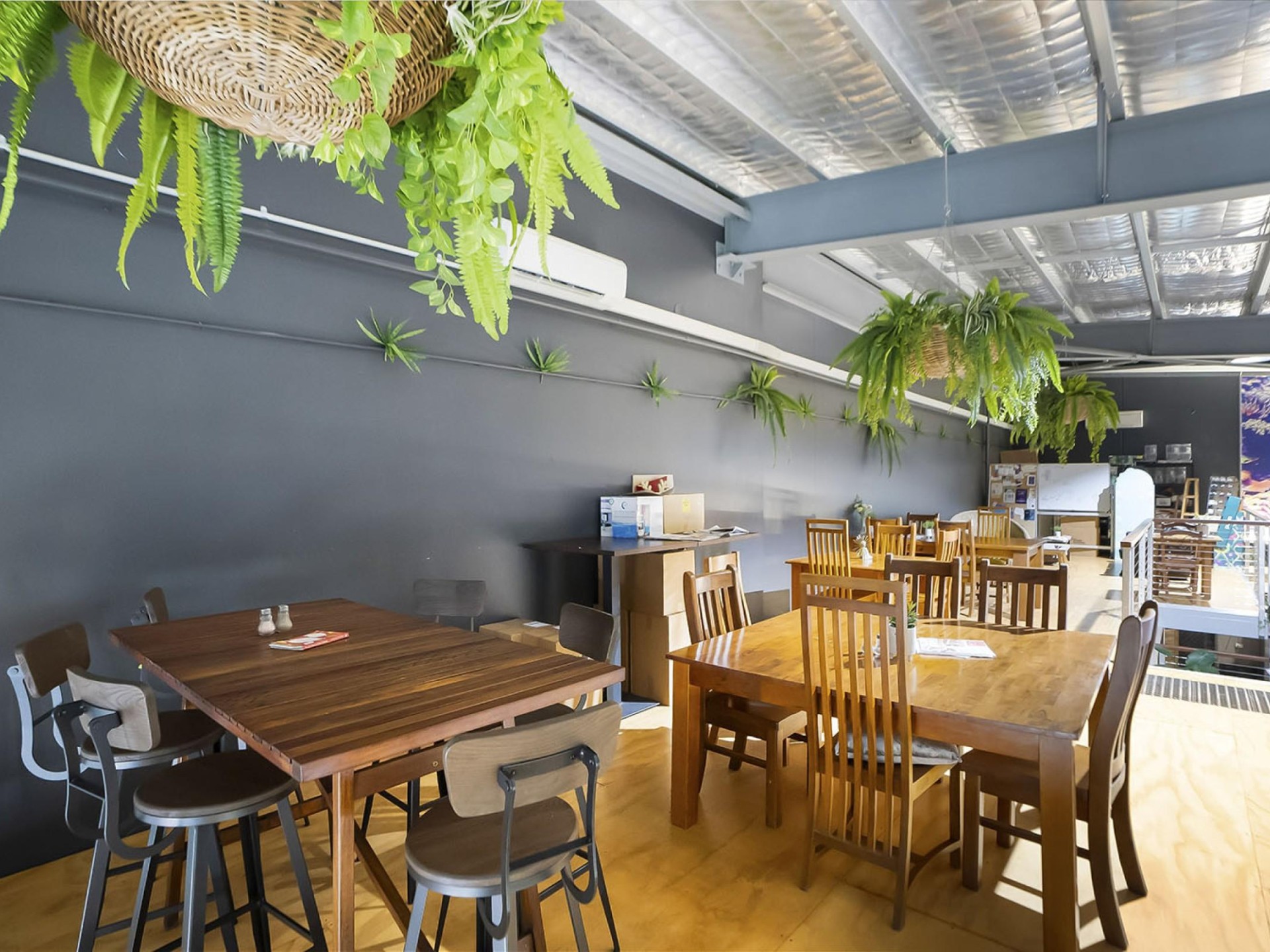 - Café with plant-based menu and mezzanine dining