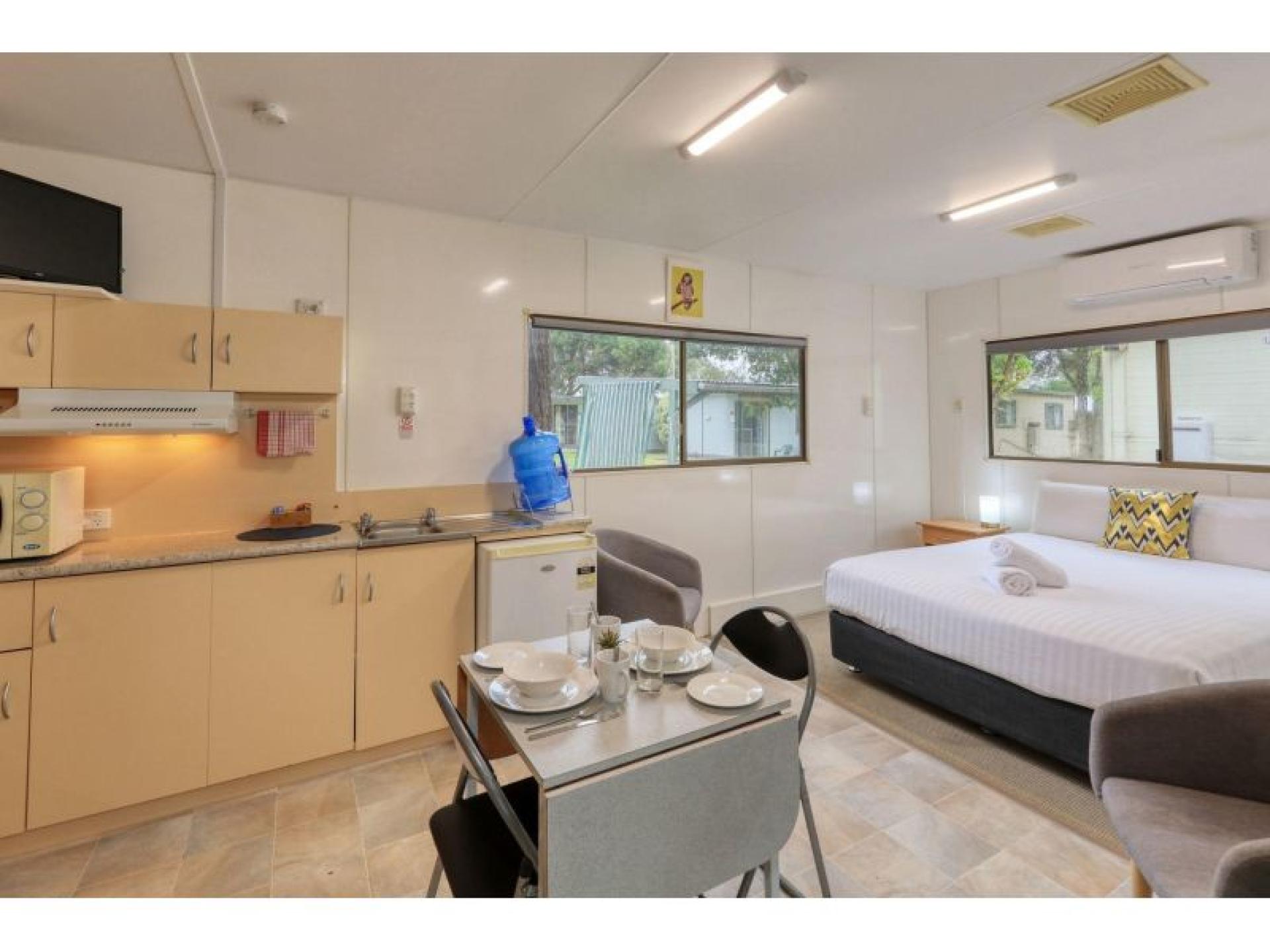 Facilities include an onsite kiosk/office that provides general goods as well as gas bottle refills, bait and fishing licences. There is a full size tennis court, amenities block with separate disability ensuite and a laundry. There is an in ground swimming pool, 2 undercover BBQ areas, a games room, fully equipped camp kitchen, dump point and car wash area. Alongside the 4 hole bush golf course is a fully fenced off-lead dog run.