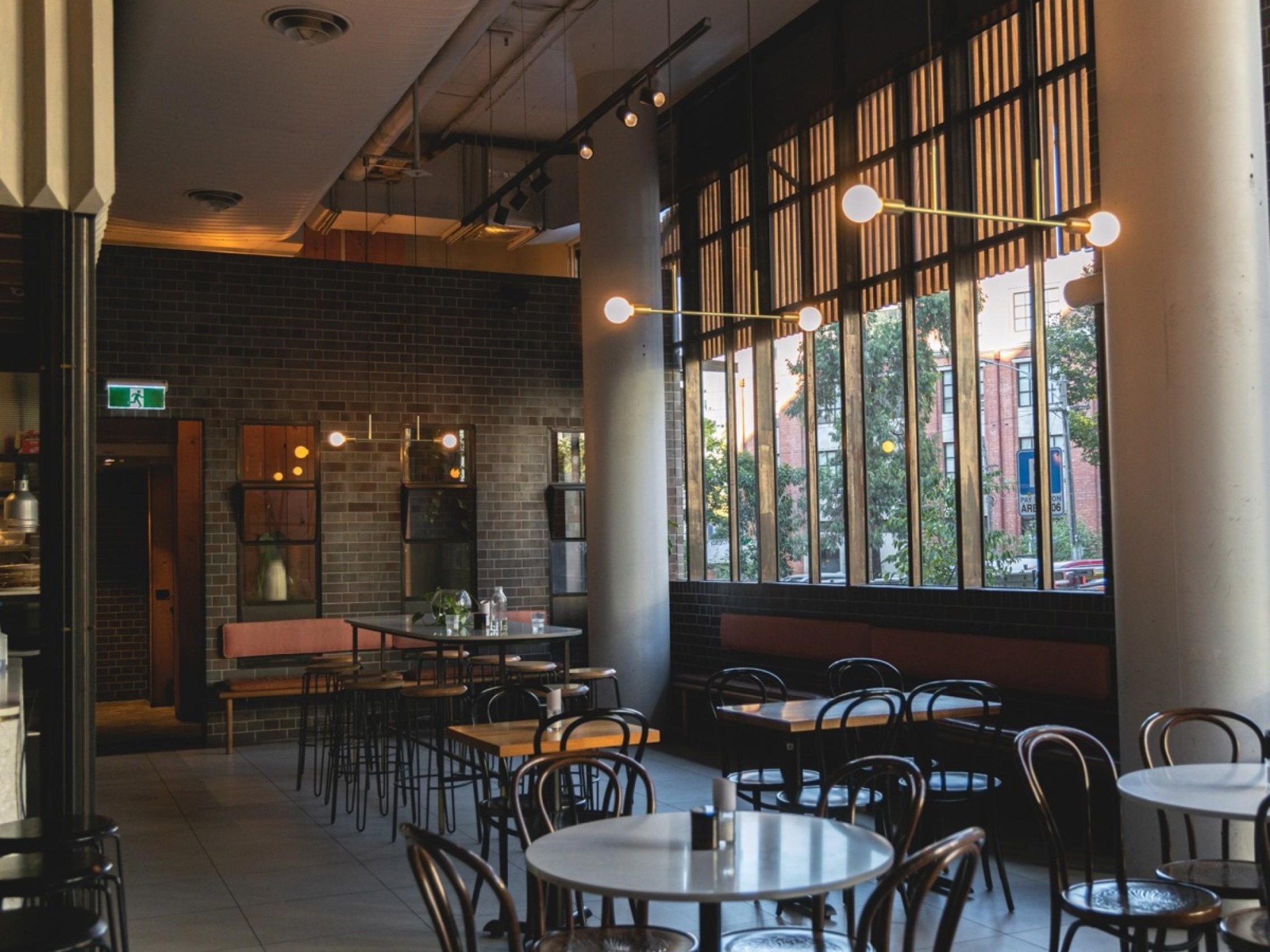 The interior is chic, industrial minimalism, decorated in calm tones of cream, blonde wood and pale beige. The space is flooded with natural light, thanks to expansive floor-to-ceiling windows that surround the front of the building. The warm timber accents and lush greenery from the large communal table create a welcoming, relaxed atmosphere. It's not just a cafe – it’s also an ideal venue for private functions, with its inviting décor and versatile layout providing the perfect setting for a memorable event. Whether you’re here for your morning coffee, a catch-up with friends, or to host a special gathering, this cafe offers a truly unique experience.