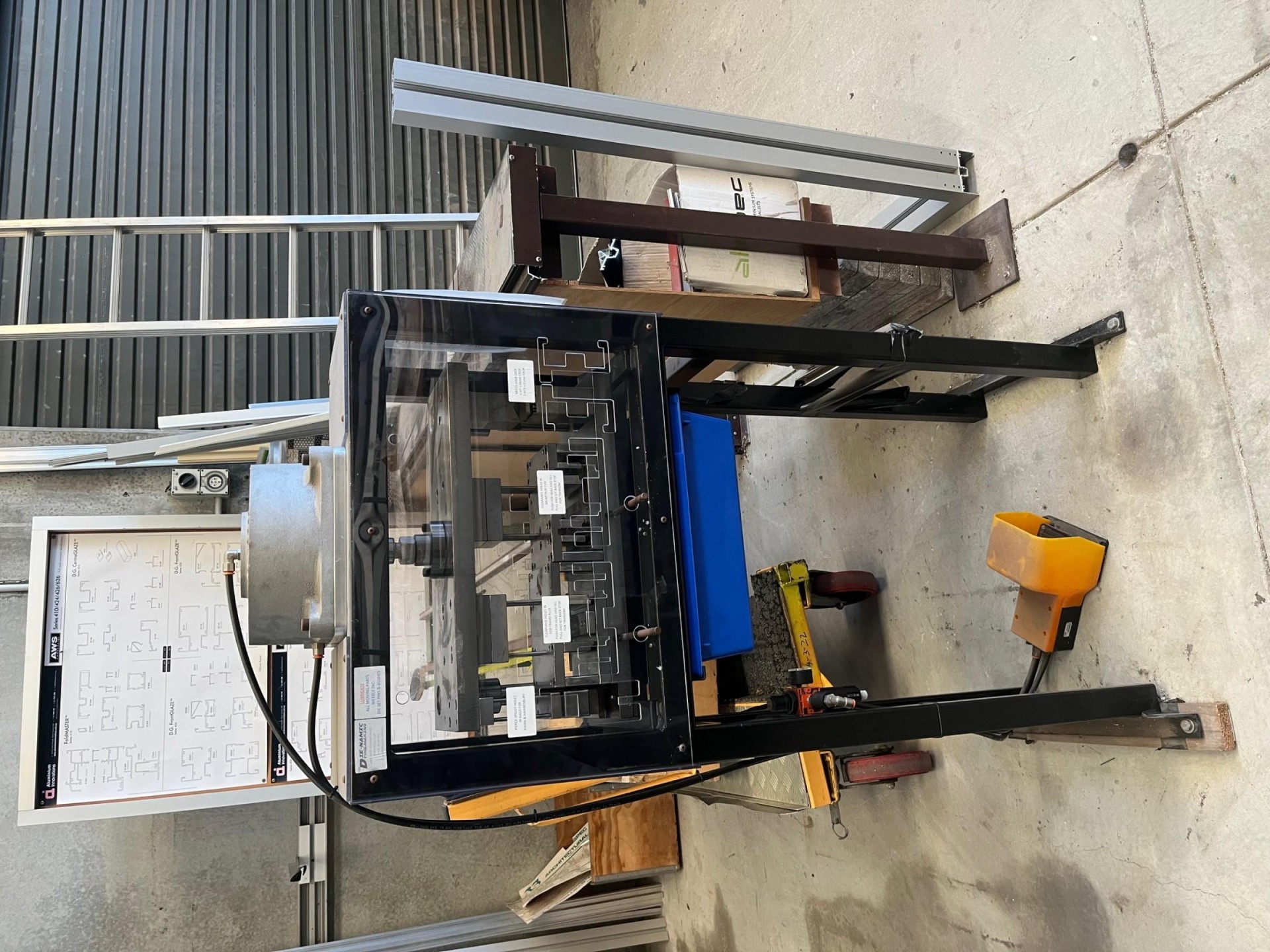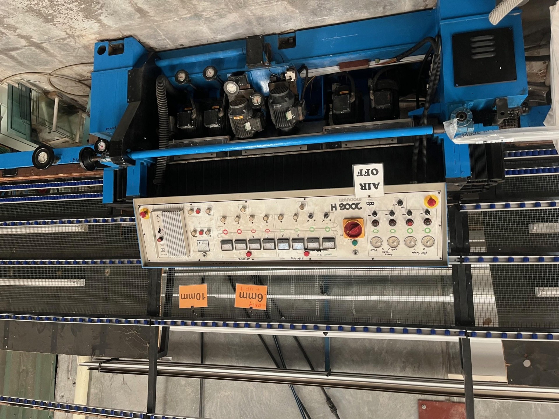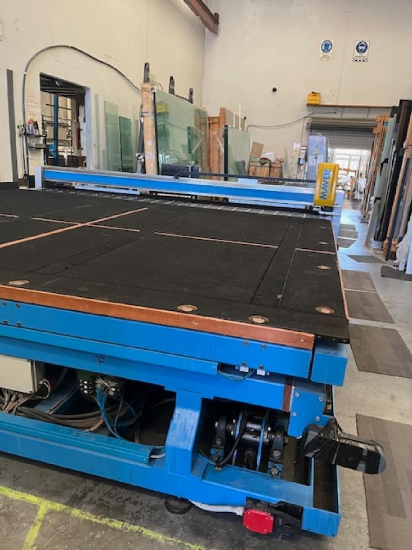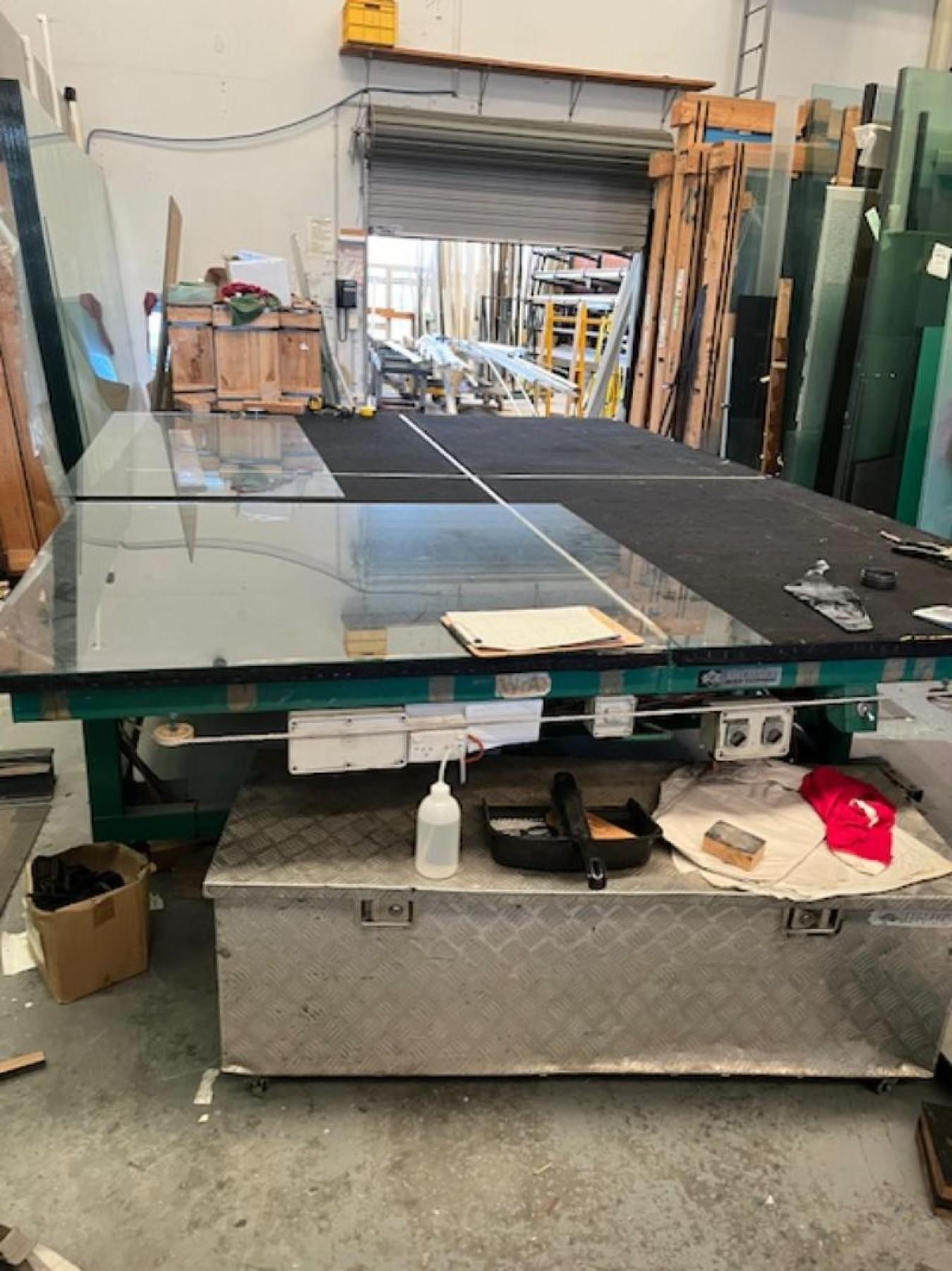 Cutting tables (1 has capacity to cut 2800 x 4200 sheets laminated & float glass), storage racks, two edging machines, aluminium saw, etc